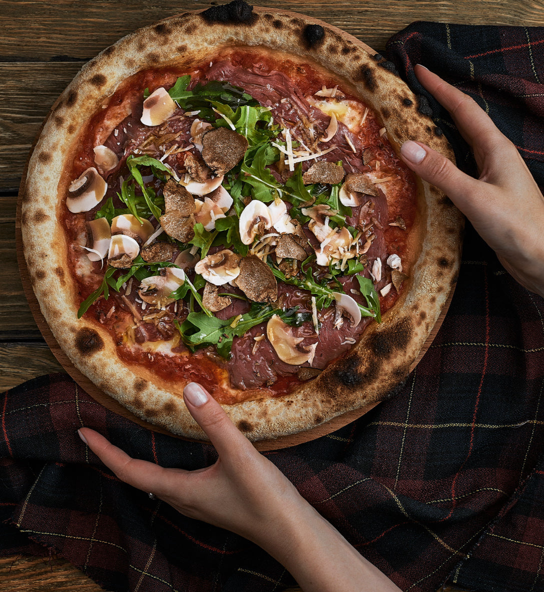 Pizza with truffle carpaccio