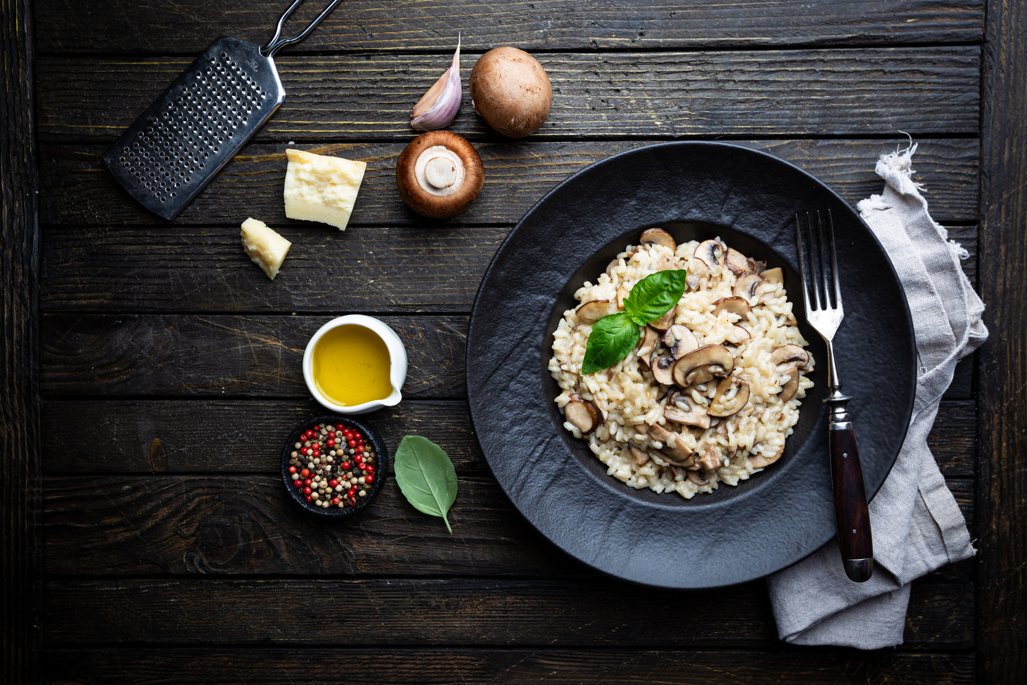 - Sauté risotto rice in a little butter and gradually add vegetable broth until it is cooked until creamy.
